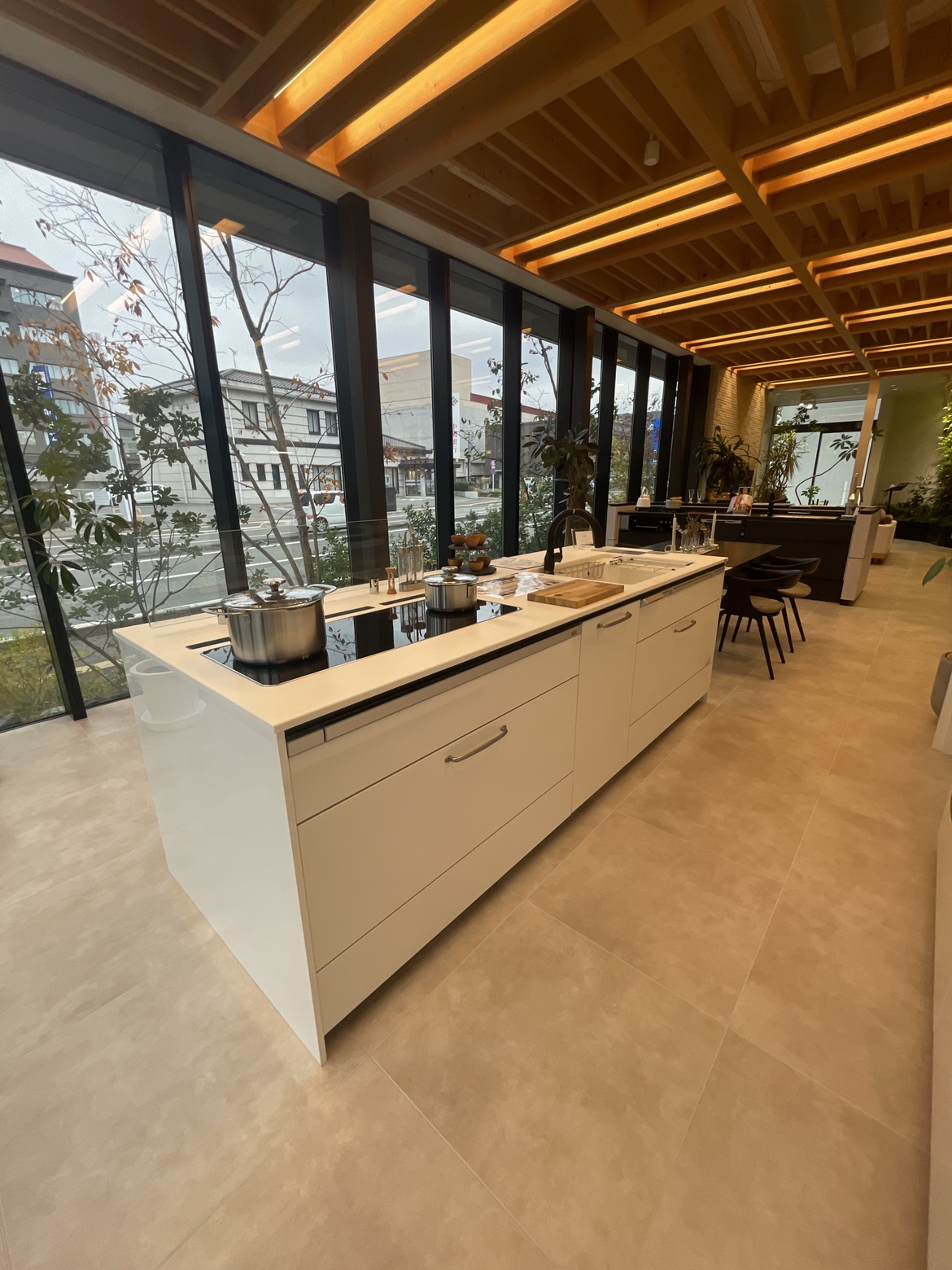 ダイニングテーブルやソファも展示し、実際のLDKのイメージに近いコーディネートでご体感いただけます。