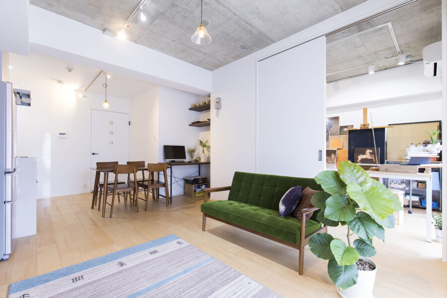築21年のマンションを譲り受けたご夫婦。画家であるご主人様がアトリエを新設したいと考えられ、リフォームを決断されました。アトリエには、作品に影が写らないように照…