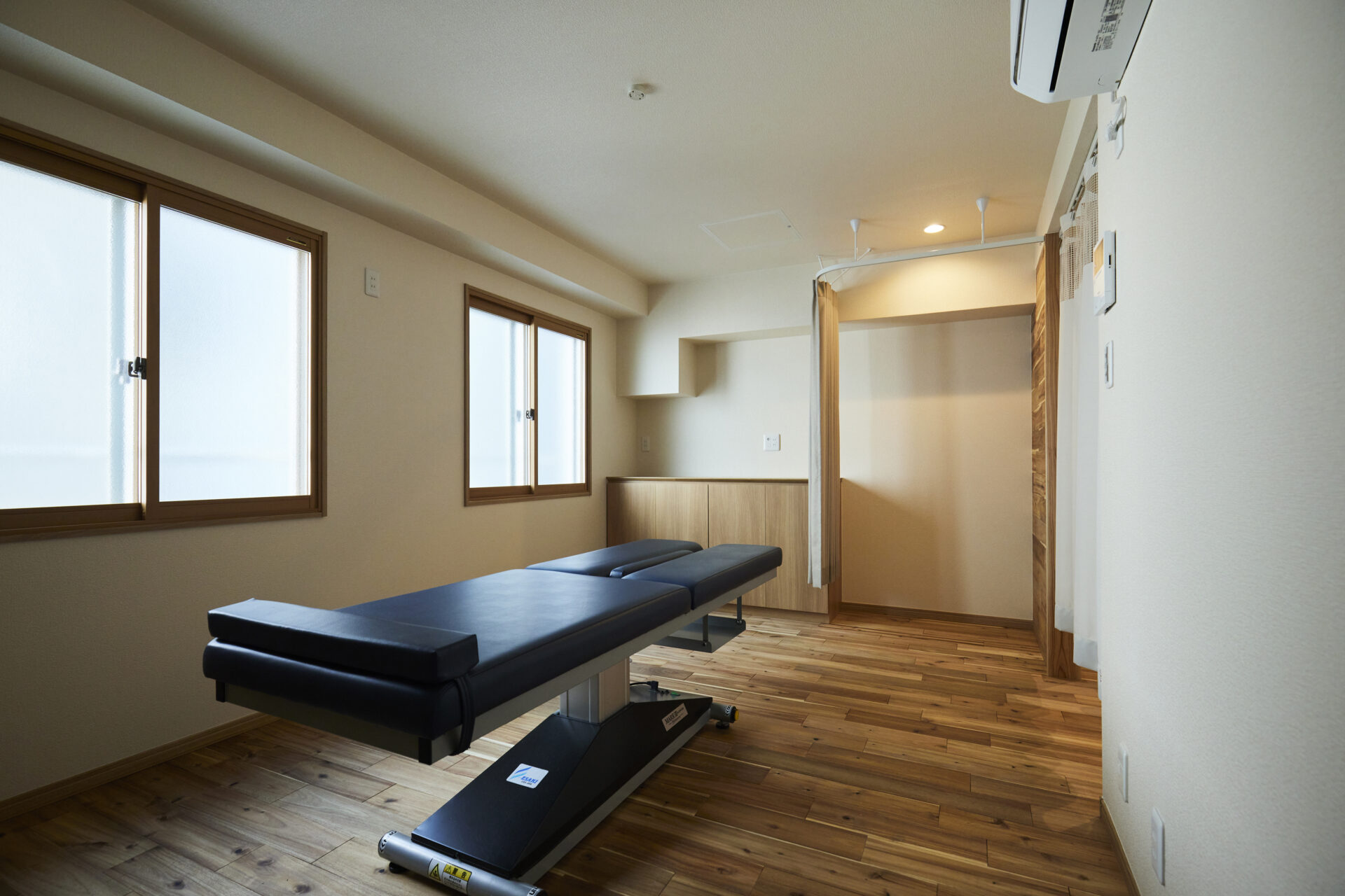 無垢材のぬくもりとやわらかな光が広がる施術スペース。さらに、内窓を設置し断熱と防音性能も向上させたことで、訪れる人が自然とリラックスできる落ち着いた空間になりました。